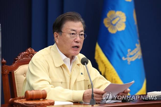 (서울=연합뉴스) 최재구 기자 = 문재인 대통령이 28일 오전 청와대 여민관 영상회의실에서 열린 국무회의에서 발언하고 있다. 2021.9.28