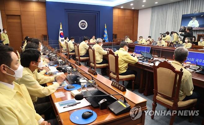 (서울=연합뉴스) 최재구 기자 = 문재인 대통령이 28일 오전 청와대 여민관 영상회의실에서 열린 국무회의에서 발언하고 있다. 2021.9.28