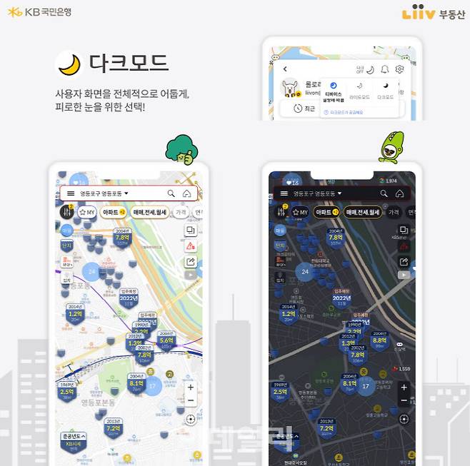 지난 2월 앱 정식버전과 웹 사이트를 동시 오픈한 리브부동산은 플랫폼 출시 이후 신규 서비스를 지속적으로 선보이고 있다. 지난 6월 말에는 초세권(초등학교), 역세권(지하철역), 의세권(병의원), 학세권(학원), 스세권(스타벅스) 등 5가지 입지 테마를 지도에서 확인할 수 있는 입지 기능을 추가했다. 부동산 앱 최초로 야간 시력보호를 위한 ‘다크모드’ 기능도 지원한다. 최신 청약 정보를 담은 ‘분양 홈’과 회원 중개업소가 이용할 수 있는 ‘리브부동산 중개사 HUB’도 오픈했다.