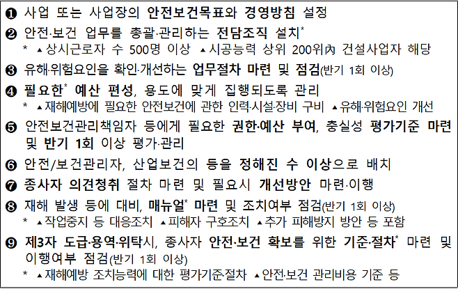 ㅇ 안전보건관리체계의 구축 및 이행
