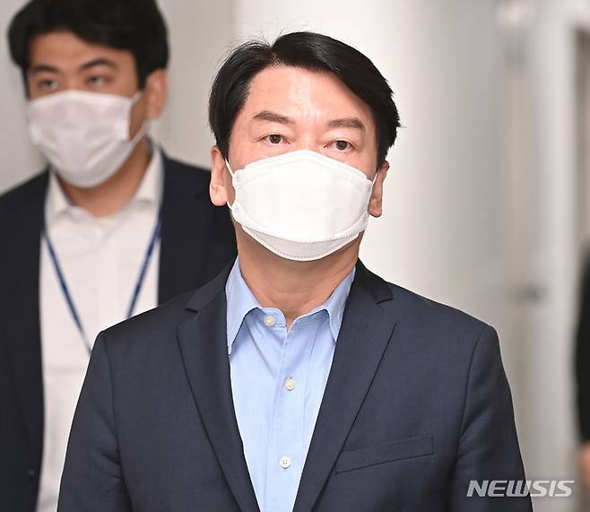 [수원=뉴시스] 김종택기자 = 국민의당 안철수 대표가 28일 오전 경기도 수원시 경기언론인협회에서 대장동 개발 특혜논란 '화천대유' 의혹을 최초로 보도한 경기경제신문사 박종명 기자를 만나기 위해 이동하고 있다. 2021.09.28.