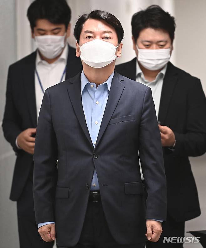 [수원=뉴시스] 김종택기자 = 국민의당 안철수 대표가 28일 오전 경기도 수원시 경기언론인협회에서 대장동 개발 특혜논란 '화천대유' 의혹을 최초로 보도한 경기경제신문사 박종명 기자를 만나기 위해 이동하고 있다. 2021.09.28.