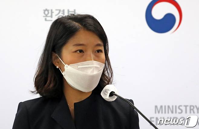 (세종=뉴스1) 장수영 기자 = 최민지 환경부 국제협력과장이 28일 정부세종청사 환경부 기자실에서 '아시아·태평양 지역, 녹색회복·탄소중립 이행 선도한다' 브리핑을 하고 있다.