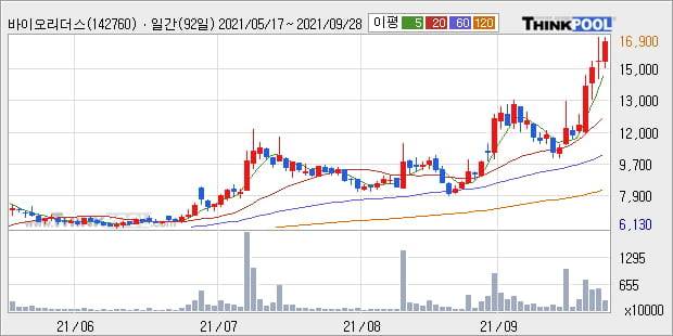 '바이오리더스' 52주 신고가 경신, 단기·중기 이평선 정배열로 상승세