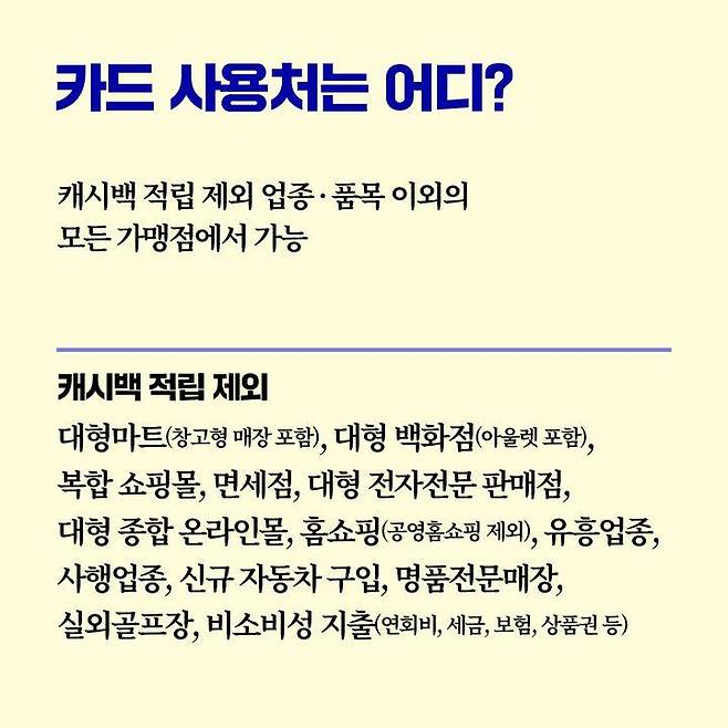 캐시백 적립 제외 업종·품목 이외의