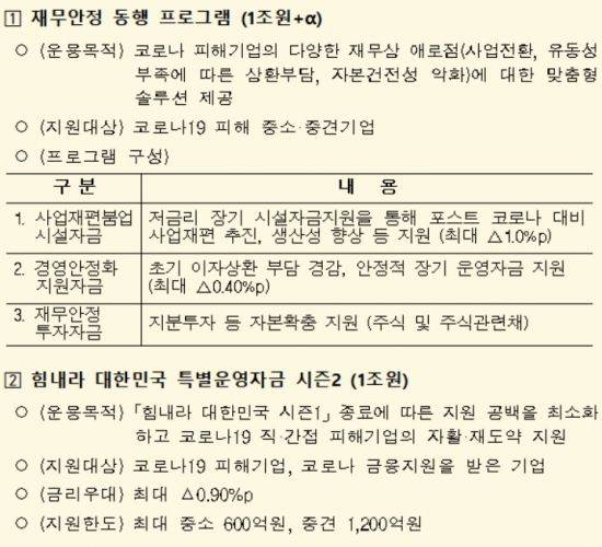 산업은행은 우선 속도감 있는 유동성 공급을 위해 기존의 1조원 규모의 '재무안정 동행 프로그램'을 활용, 코로나 피해기업의 다양한 재무상 애로점에 대한 맞춤형 솔루션을 제공하고 피해기업의 연착륙을 지원할 방침이다.