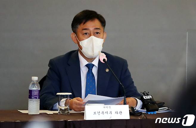 (서울=뉴스1) 박지혜 기자 = 양성일 보건복지부 1차관이 28일 오후 서울 플라자호텔에서 열린 보건복지부 국민연금심의위원회 3차회의에서 모두발언을 하고 있다. 2021.9.28/뉴스1