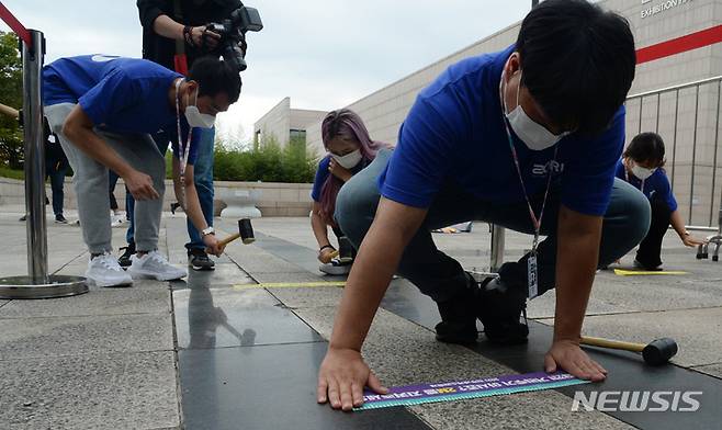 2021 전주세계소리축제 개막 D-1 '거리두기 표시 스티커 붙이는 소리천사'