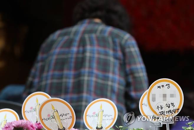 (서울=연합뉴스) 백승렬 기자 = 수능을 51일 앞둔 28일 서울시 종로구 조계사 국화꽃에 수능합격을 발원하는 소원지가 꽂혀 있다. 2021.9.28