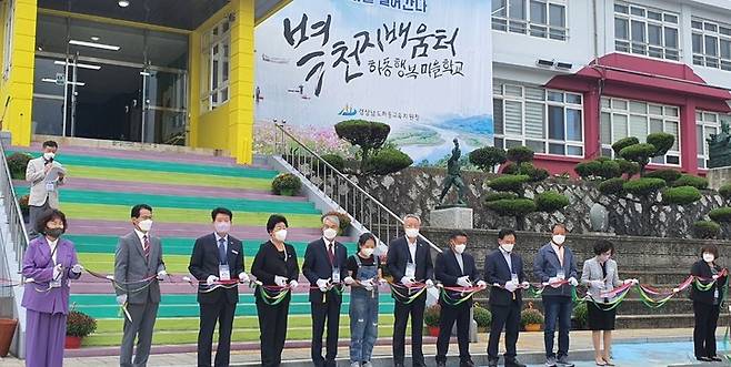 [하동=뉴시스] 김윤관 기자 = 경남 하동의 학생과 지역민의 마을교육공동체 허브인 별천지배움터 하동행복마을학교가 ‘상상한대로 꿈꾸는대로 미래를 열어간다’는 슬로건으로 28일 문을 열었다.