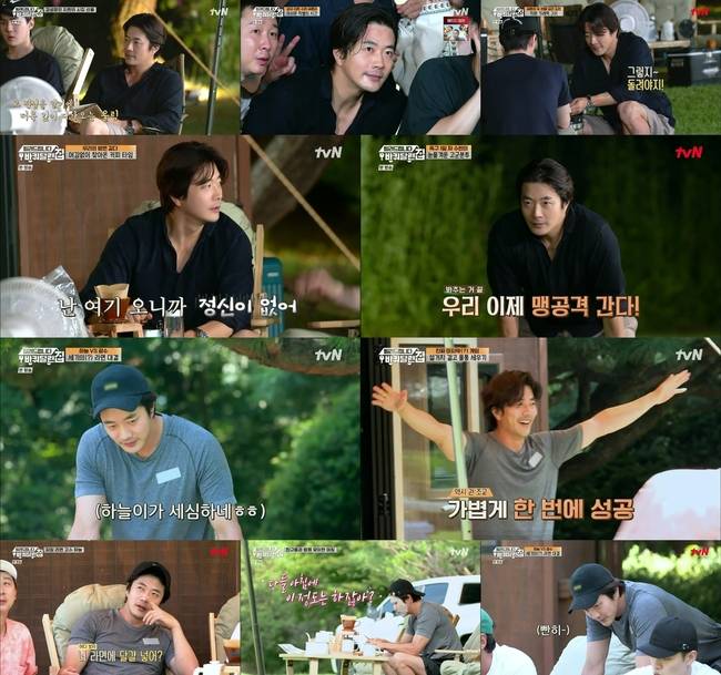 하지만 다정한 맏형 권상우도 스포츠에는 진심. 양보 1도 없는 달밤의 족구대결에서 승부욕을 폭발시켰다. 같은 팀 한효주가 적응할 수 있도록 격려하며 진두지휘하다가도, 상대편 채수빈의 실수엔 ‘투 터치’를 연발하며 승부에 집착하는 반전 매력이 웃음을 안겼다.