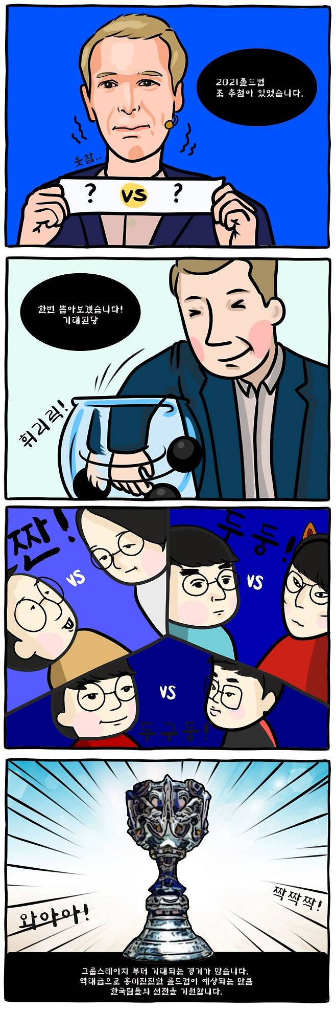 위 만화에 나오지는 않지만 플레이-인 스테이지부터 역대급 꿀잼 경기가 성사됐는데요. 먼저 플레이-인에서는 옛 그리핀 돌풍을 일으켰던 동료 '쵸비' 정지훈(한화생명e스포츠)과 '타잔' 이승용(LNG)이 개막전에서 만나 서로에게 칼을 겨누게 됐습니다.