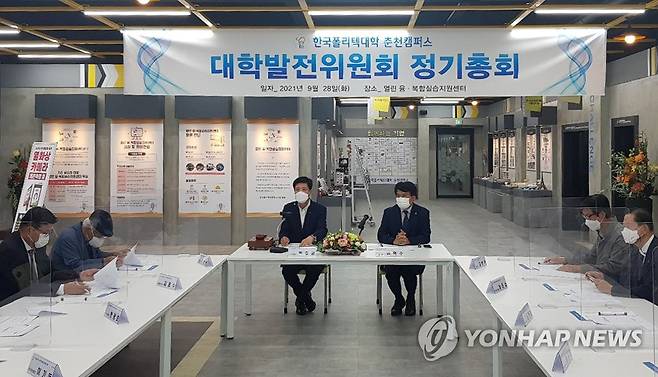 (춘천=연합뉴스) 28일 강원 춘천시 한국폴리텍Ⅲ대학에서 열린 대학발전위원회 정기총회에서 이덕수 학장이 인사말을 하고 있다. 2021.9.28 [한국폴리텍Ⅲ대학 춘천캠퍼스 제공. 재판매 및 DB 금지]