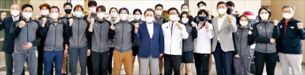 윤홍근 빙상연맹회장, 국가대표선수단 격려