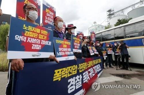공공운수노조 산하 화물연대 조합원 200여명은 지난 23∼24일에 이어 26∼28일에도 SPC삼립 청주공장 앞에서 농성 등을 이어가며 경찰과 대치하고 있다.