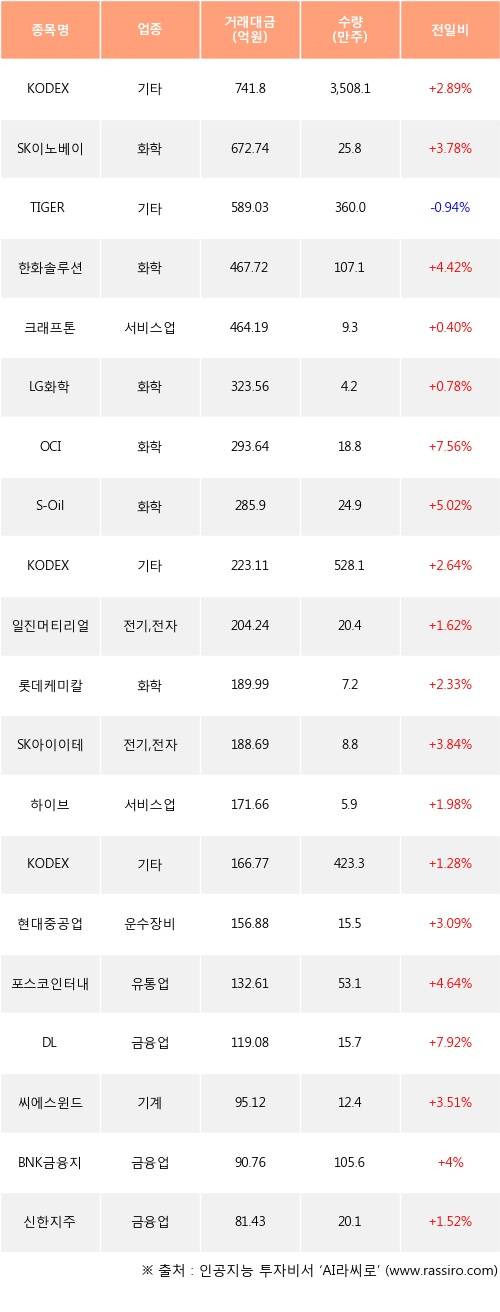 28일, 거래소 기관 순매수상위에 화학 업종 3종목
