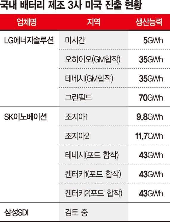 SK이노베이션이 글로벌 완성차 포드와의 합작법인 투자를 확정하면서 국내 배터리 3사가 미국 시장서 진검승부에 나서게 됐다.