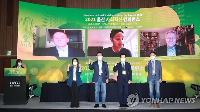 (울산=연합뉴스) 28일 오후 울산시 울주군 울산전시컨벤션센터에서 '2021년 울산 사회혁신 콘퍼런스'가 열리고 있다. 행정안전부와 울산시가 공동 주최한 이번 콘퍼런스는 '포스트 코로나 시대, 사회혁신에서 찾은 지역(로컬)의 미래'를 주제로 3일간 열린다. 2021.9.28 [울산시 제공. 재판매 및 DB 금지]