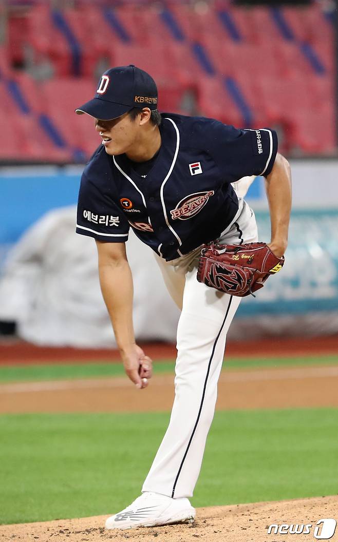 (수원=뉴스1) 김영운 기자 = 28일 오후 경기도 수원시 장안구 KT위즈파크에서 열린 ‘2021 신한은행 SOL KBO리그’ KT 위즈와 두산 베어스의 경기, 두산 선발투수 박종기가 공을 던지고 있다. 2021.9.28/뉴스1