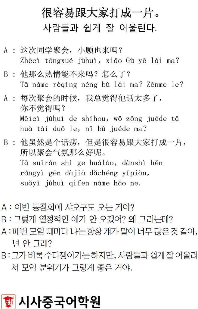 [시사중국어학원의 리얼 중국어 회화] 사람들과 쉽게 잘 어울린다.