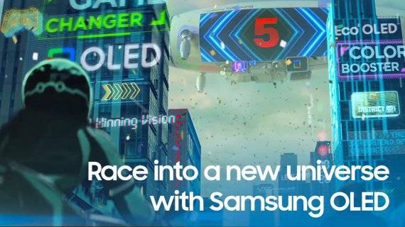 2분 분량의 영상에는 OLED 사용자와 액정표시장치(LCD) 사용자 간 바이크 레이싱 게임 승부가 펼쳐진다.