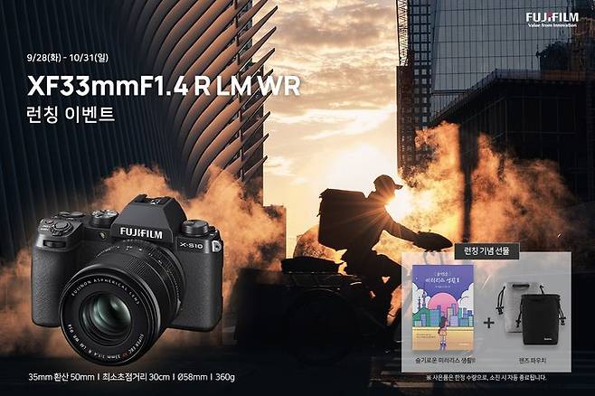 [서울=뉴시스] 박정규 기자 = 후지필름일렉트로닉이미징코리아는 차세대 대구경 표준 단초점 렌즈 XF33㎜F1.4 R LM WR을 정식 출시한다고 28일 밝혔다.