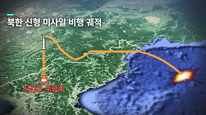 북한이 지난 2017년 대륙간탄도미사일 화성 14형을 쐈던 자강도 무평리 일대에서 오늘 오전 6시 40분 미사일 한 발이 솟아올랐습니다.
