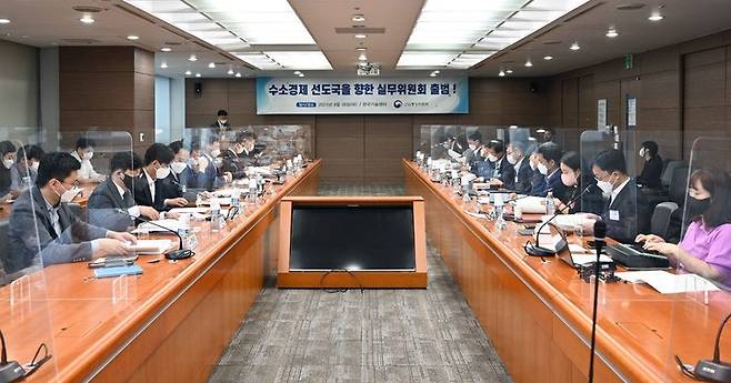 [서울=뉴시스] 홍효식 기자 = 박기영 산업통상자원부 2차관이 28일 오후 기술센터 대회의실에서 열린 수소경제 실무위원회 출범식에 참석해 발언하고 있다. (사진=산업통상자원부 제공) 2021.09.28. photo@newsis.com *재판매 및 DB 금지
