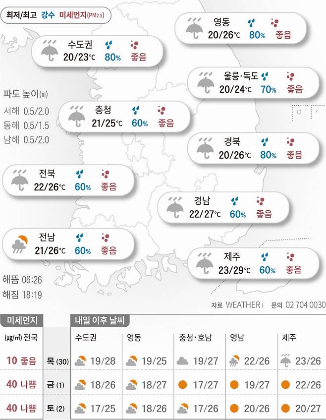 2021년 9월 29일 전국 흐리고 비..밤부터 차차 그쳐 [오늘의 날씨]