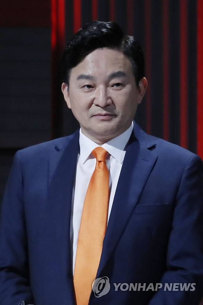 (서울=연합뉴스) 국민의힘 원희룡 대선 경선 예비후보가 28일 서울 상암동 MBC에서 열린 대선 경선 예비후보자 4차 방송토론회에서 방송 준비를 하고 있다. 2021.9.28 [국회사진기자단]