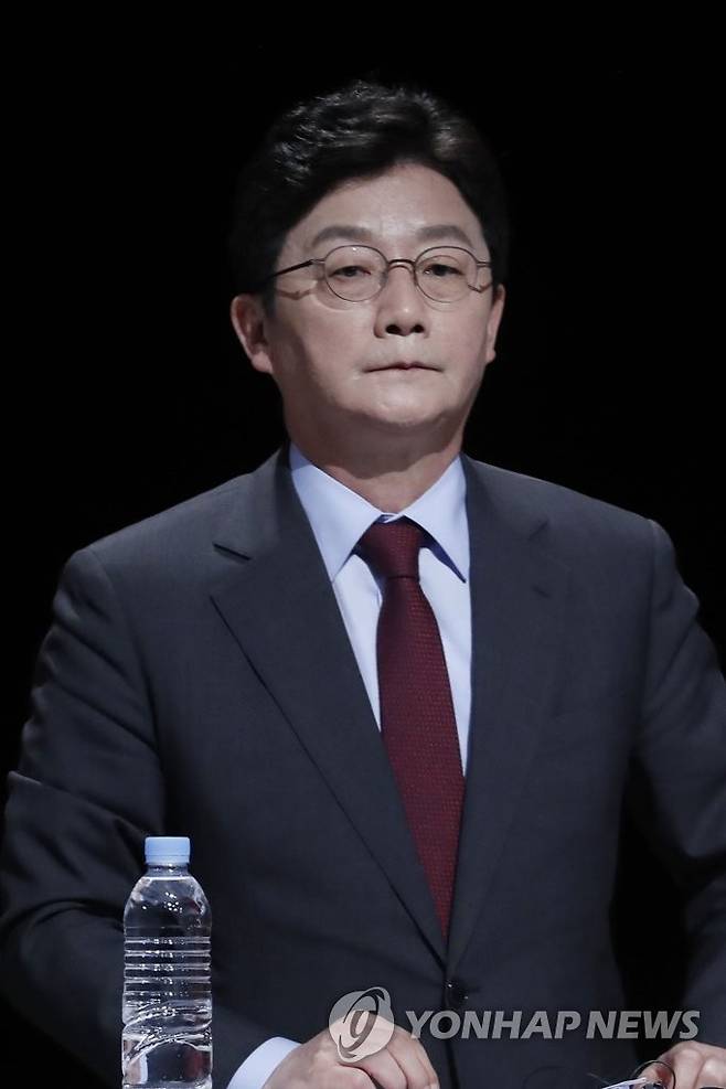 (서울=연합뉴스) 국민의힘 유승민 대선 경선 예비후보가 28일 서울 상암동 MBC에서 열린 대선 경선 예비후보자 4차 방송토론회에서 방송 준비를 하고 있다. 2021.9.28 [국회사진기자단]