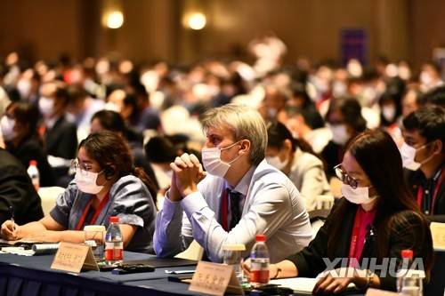 (210928) -- JINAN, Sept. 28, 2021 (Xinhua) -- Participants attend the Seventh Nishan Forum on World Civilizations, a forum on Confucius culture, in Qufu, east China's Shandong Province, Sept. 27, 2021. (Xinhua/Guo Xulei)