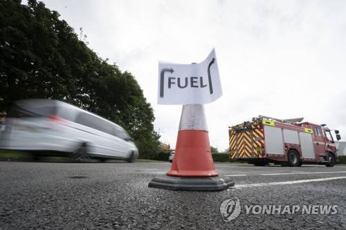 Vehicles arrive at a petrol station, in Manchester, England, Tuesday, Sept. 28, 2021. Thousands of British gas stations have run dry, as motorists scrambled to fill up amid a supply disruption due to a shortage of truck drivers. Long lines of vehicles formed at many gas stations over the weekend, and tempers frayed as some drivers waited for hours. (AP Photo/Jon Super)