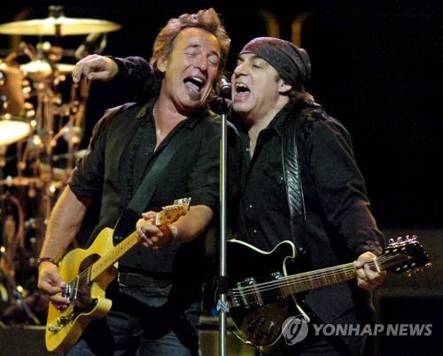 FILE - Bruce Springsteen, left, and Stevie Van Zandt perform with the E Street Band on Oct. 9, 2007 in East Rutherford, N.J. Van Zandt's memoir "Unrequited Infatuations,” released on Tuesday, Sept. 28. (AP Photo/Bill Kostroun, File) OCT. 9, 2007 FILE PHOTO.