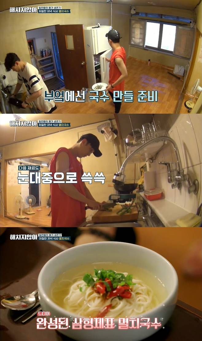 저녁 식사로 국수를 해먹기로 결정한 세 사람은 윤종훈의 능숙한 칼질로 인해 저녁 걱정을 덜게 됐다. 멸치국수를 해 먹게 된 이들은 비록 여러 시행착오를 거쳤지만, 만족스러운 식사로 하루를 마무리하게 됐다.
