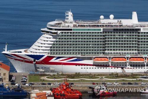 epa09493215 A view of MS Iona cruise ship as it remains docked at the Vigo estuary in Vigo, province of Galicia, Spain, 28 September 2021. P&O Cruises' 344 metres length MS Ione arrived to Vigo on it's first international journey in times of the COVID-19 pandemic. EPA/Salvador Sas