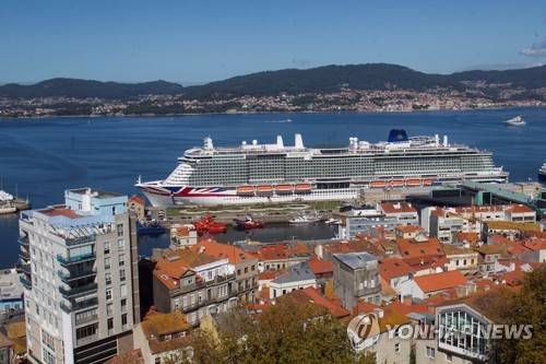 epa09493216 A view of MS Iona cruise ship as it remains docked at the Vigo estuary in Vigo, province of Galicia, Spain, 28 September 2021. P&O Cruises' 344 metres length MS Ione arrived to Vigo on it's first international journey in times of the COVID-19 pandemic. EPA/Salvador Sas