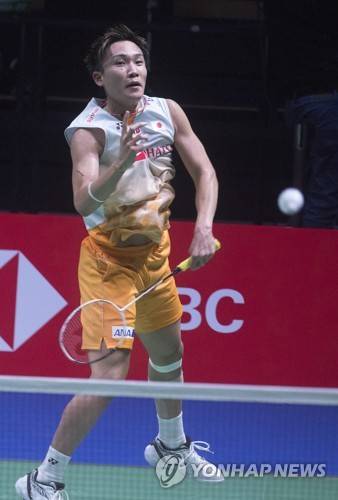 epa09493317 Kento Momota of Japan in action during the Men's Singles match against Johnnie Totjussen of England at the 2021 Sudirman Cup tie Japan vs England in Vantaa Finland, Finland, 28 September 2021. EPA/MAURI RATILAINEN
