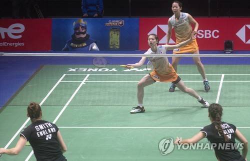 epa09494070 Nami Matsuyama and Chiharu Shida of Japan (top) and Chloe Birch and Lauren Smith of England in action during the women's doubles match at the 2021 Sudirman Cup tie Japan vs England in Vantaa Finland, Finland, 28 September 2021. EPA/MAURI RATILAINEN