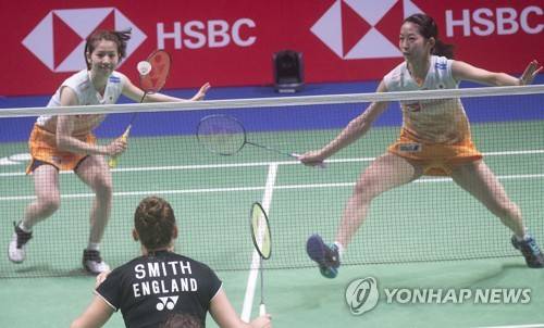 epa09494088 Nami Matsuyama and Chiharu Shida of Japan (top) and Chloe Birch and Lauren Smith of England in action during the women's doubles match at the 2021 Sudirman Cup tie Japan vs England in Vantaa Finland, Finland, 28 September 2021. EPA/MAURI RATILAINEN