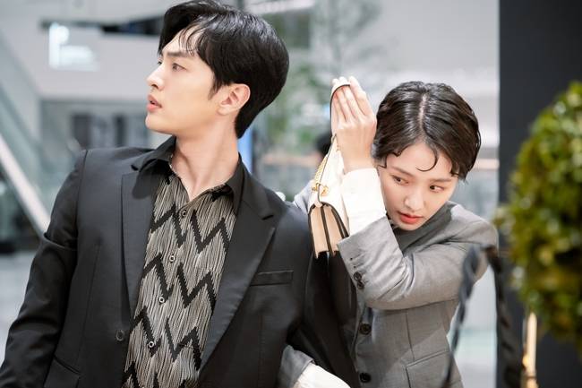 KBS 2TV 수목드라마 '달리와 감자탕'(극본 손은혜 박세은 / 연출 이정섭 / 제작 몬스터유니온 코퍼스코리아) 측은 9월 29일 진무학(김민재 분)과 김달리(박규영 분)의 '백화점 숨바꼭질' 스틸을 공개했다.