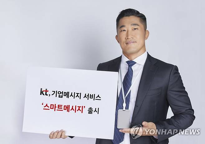 (서울=연합뉴스) KT가 기업 메시지 서비스를 'KT 스마트메시지'로 리뉴얼하고, '양방향·빅데이터·융합'을 핵심으로 한 서비스의 디지털전환(DX)을 단행했다고 29일 밝혔다. 사진은 'KT 스마트메시지' 광고모델인 이종격투기선수 김동현이 포즈를 취하고 있는 모습. 2021.9.29