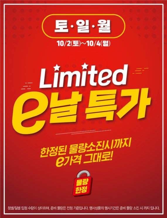 10월 2일부터 4일까지 3일간은 'e날 특가' 행사를 열고, 1+1 증정 및 최대 50% 할인 행사도 진행한다.