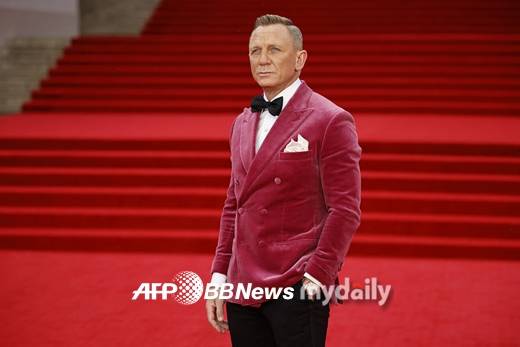 분홍색 벨벳 디너 재킷을 입은 다니엘 크레이그는 라미 말렉, 레아 세이두 등과 함께 프리미어 행사에 참석했다.