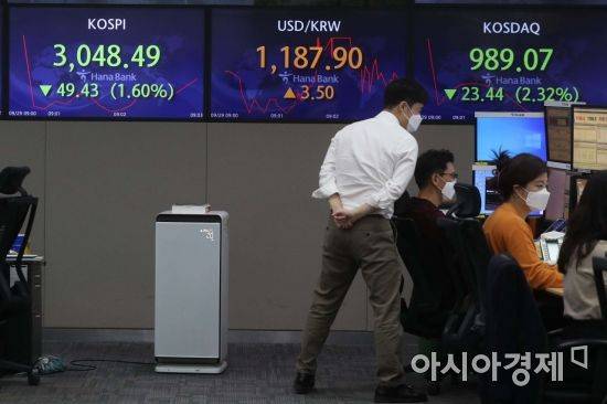 이날 코스피는 전 거래일 대비 1.37%(42.42포인트) 하락한 3055.50으로 장을 출발한 뒤 내림세를 이어가고 있다.