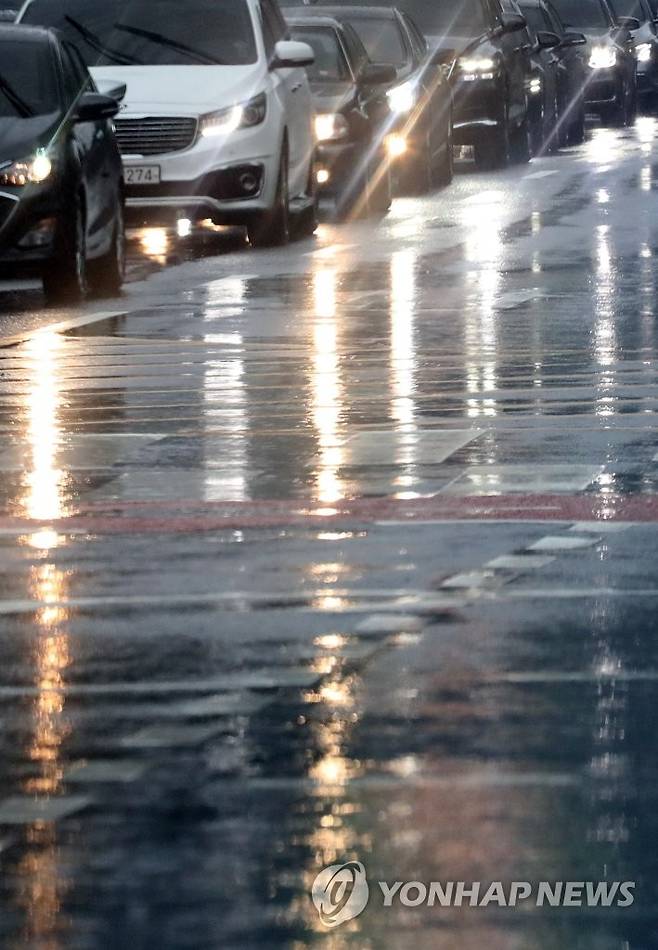 (서울=연합뉴스) 한상균 기자 = 비가 내린 29일 오전 서울 시내에서 차들이 전조등을 켜고 있다. 2021.9.29