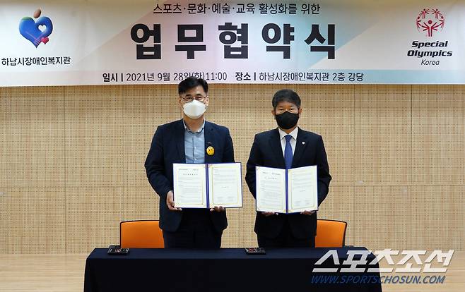 스페셜올림픽코리아(SOK)가 28일 하남시장애인복지관과 발달장애인 리더십 프로그램 활성화를 위한 업무협약을 체결했다.