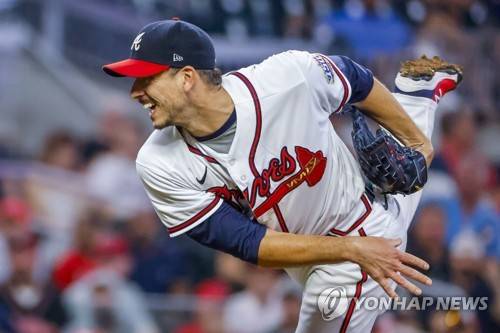 epa09494586 Atlanta Braves starting pitcher Charlie Morton delivers to a Philadelphia Phillies batter during the third inning of an MLB baseball game between the Philadelphia Phillies and the Atlanta Braves at Truist Park in Atlanta, Georgia, USA, 28 September 2021. EPA/ERIK S. LESSER