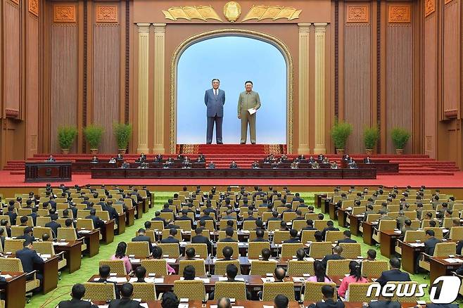 (평양 노동신문=뉴스1) = 북한이 28일 우리의 국회격인 최고인민회의 14기의 5차 회의를 개최했다고 29일 노동당 기관지 노동신문이 보도했다. 신문은 "1일 회의가 개최됐다"라고 전해 이날 2일차 회의가 진행될 것임을 시사했다.