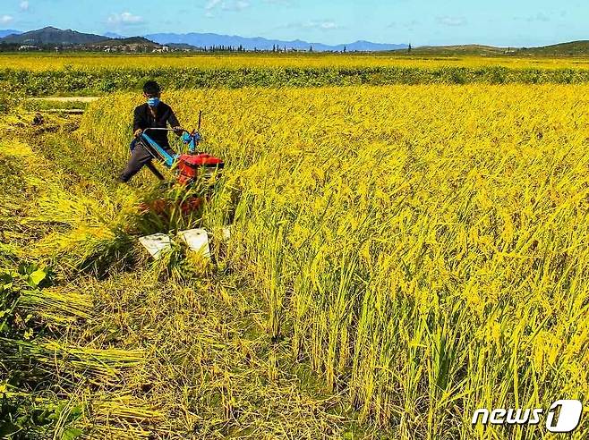 (평양 노동신문=뉴스1) = 북한 노동당 기관지 노동신문은 29일 "각지 농촌들이 가을걷이로 들끓고 있다"라고 보도했다. 식량난을 겪고 있는 북한은 알곡생산 목표 달성을 위해 총력전을 벌이고 있다. 사진은 신천군.